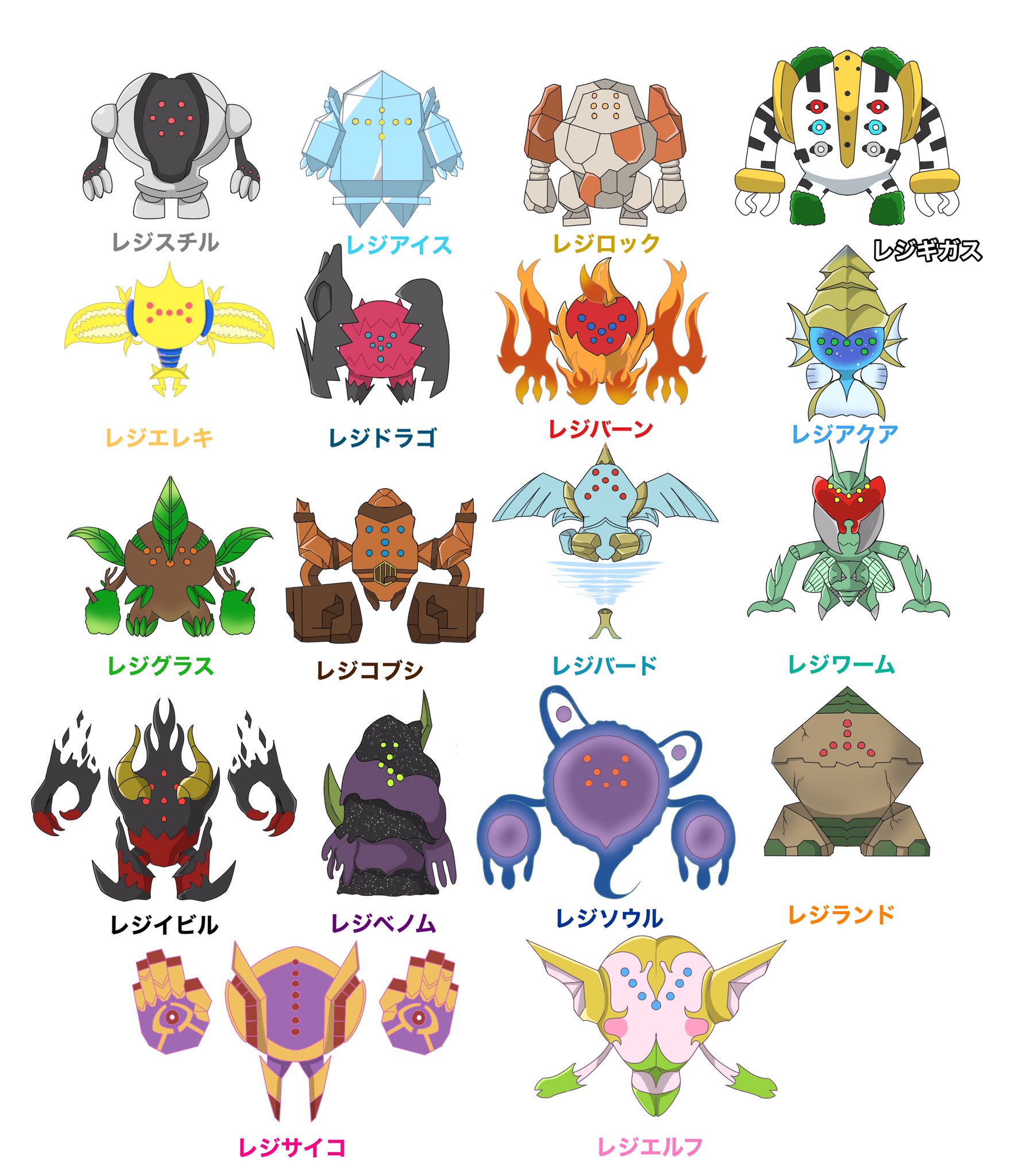 ヨミエル その昔自分はレジ系のオリジナルを考えたことがあった ほのおタイプの レジボイラ でんきタイプの レジガウス くさタイプの レジリーフ そんな中で今回の新しいレジ系 想像が現在になって本当に嬉しいったらありゃしない ポケダイ